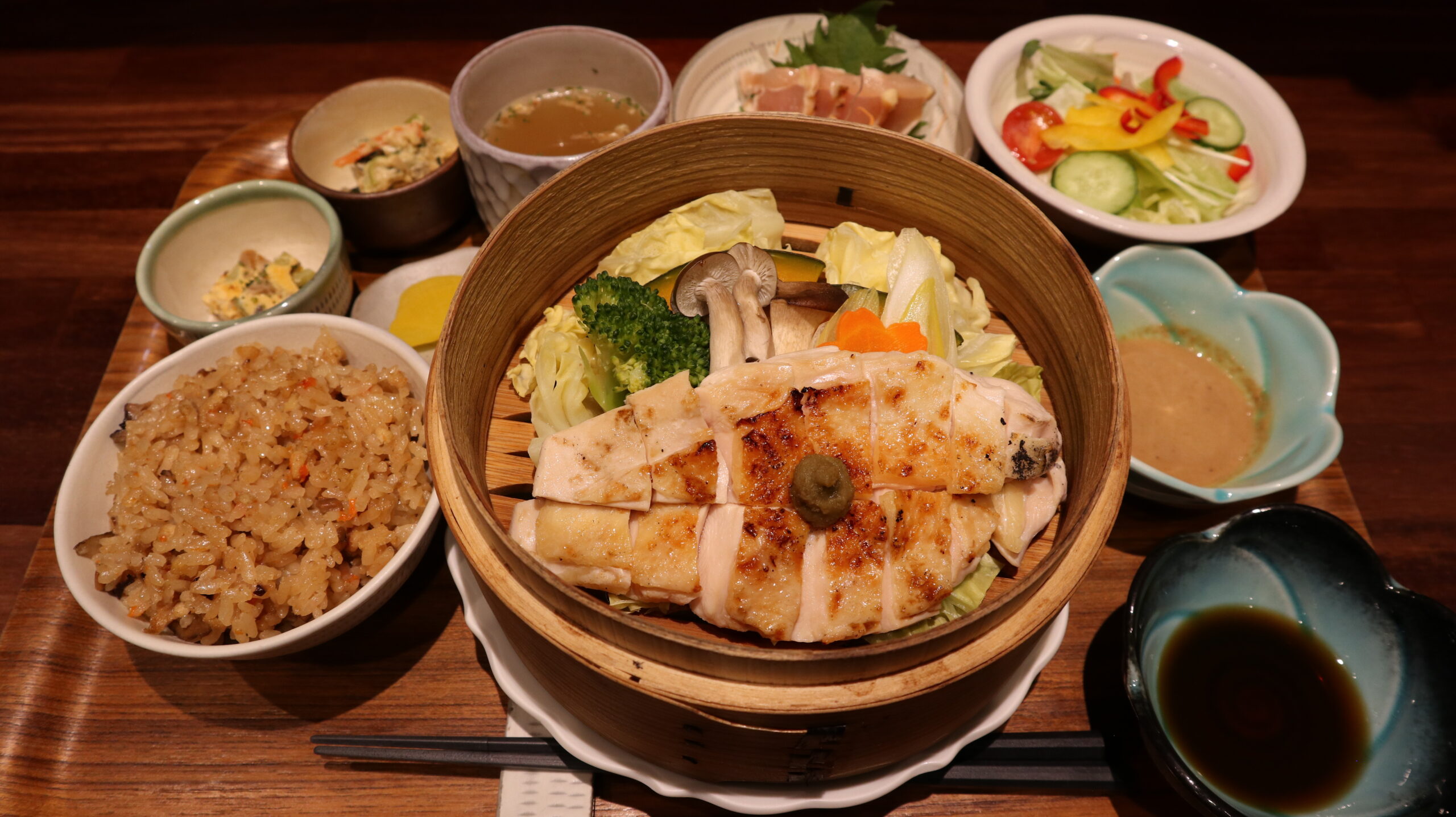 | むね肉と野菜のわっぱ蒸し | 1,200円 | 鶏ご飯 | 350円 |
