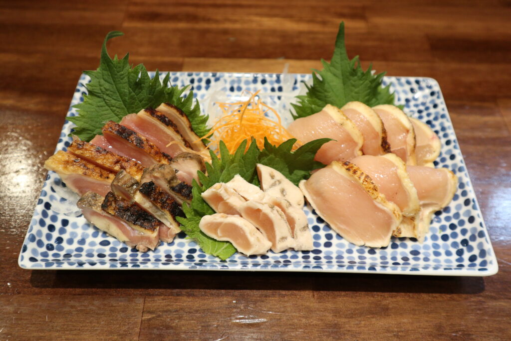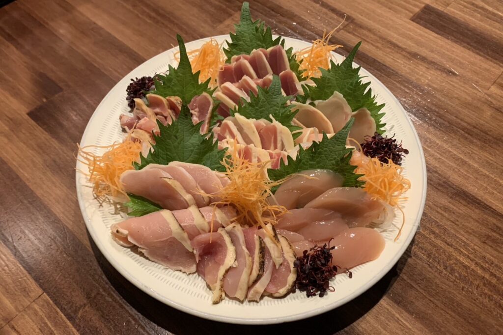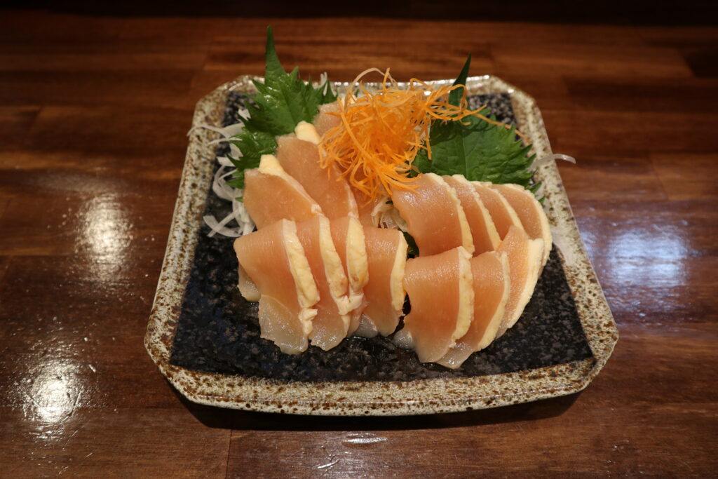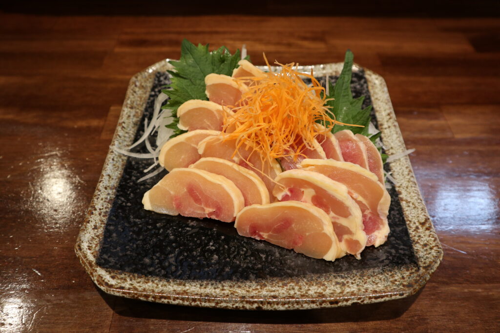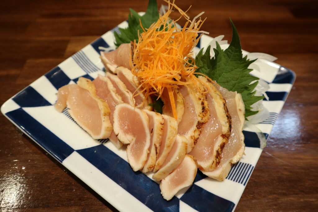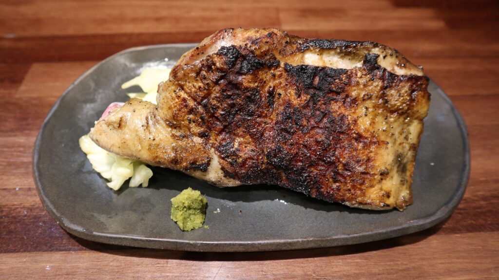 | 骨付きもも炭火焼き | 1,500円 | 鶏皮の酢の物 | 550円 |